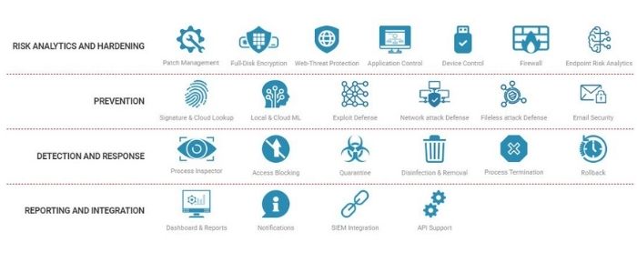 - Multiple Layers Of Security For Endpoints: Antivirus and antimalware with behavioral monitoring, zero-day threat protection, application control, firewall, device control and content control with anti-phishing and anti-spam for Exchange mail servers.