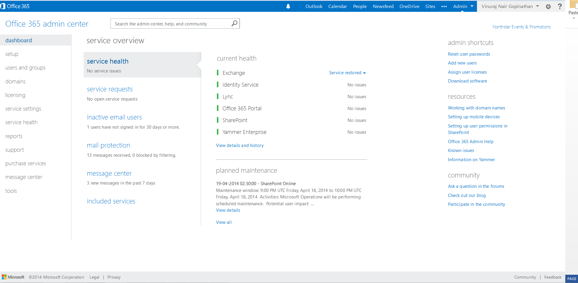Site mailboxes Yes Yes