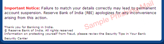 Phishing email alert : Stay away from phishing emails claiming to be from Reserve Bank of India.
