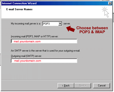 8. In the Incoming mail field type mail.yourdomain.com.In the Outgoing mail (SMTP)field type mail.yourdomain.com