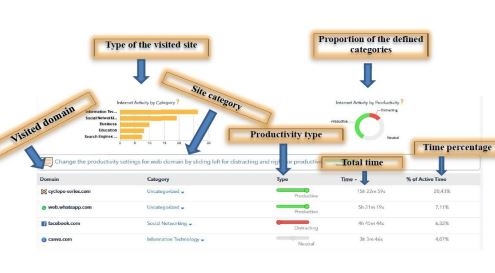 ✔ Unproductive time (Social networking, News, Sports, Games, Online shopping, etc.)