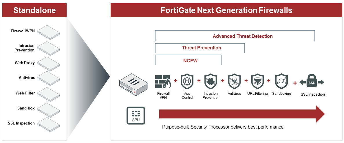 The majority of malware propagates by using known vulnerabilities and is a major cause of attacks. FortiGate NGFWs offer consolidated IPS without degrading performance to provide virtual patching and prevent against known and zero-day attacks and Reduce Cost & Complexity.