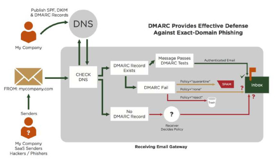 DMARC ensures that legistimate email is properly authenticating against established DKIM & SPF standards, & that fraudulent activity spoofing domains under your company’s control is blocked