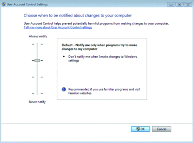 Figure 3 User Account Control, the bane of administrators, has been revamped and improved. (Click the image for a larger view)