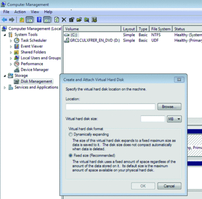 45. Create Virtual Worlds. Virtualization capability has been added to the Disk Management tools. If you open Computer Management, go to the Disk Manager tool and then click the Action button at top, you will see the options Create VHD and/or Attach VHD. This allows you to create and mount a virtual hard drive directly from within the GUI. Note: With Windows 7 you even have the ability to boot a Windows 7 VHD (see Figure 6).